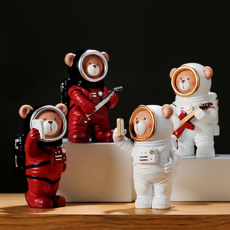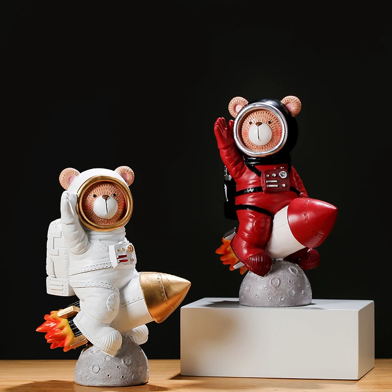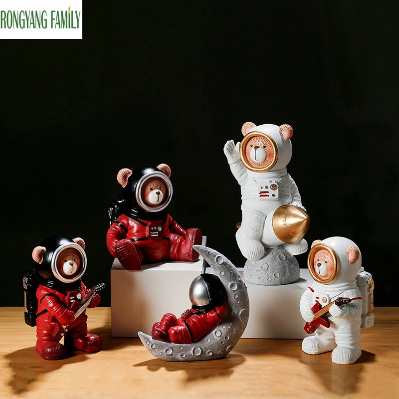 HOT SALE Nordic Bear Astronaut Sculpture Home Decor Cosmonaut Statue Lovely Spaceship Miniatures Resin Creat