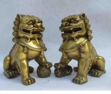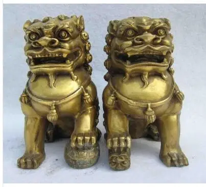Art Bronze Decoration Crafts Brass Decorated china Family Feng Shui Copper brass Door Foo Dogs tali