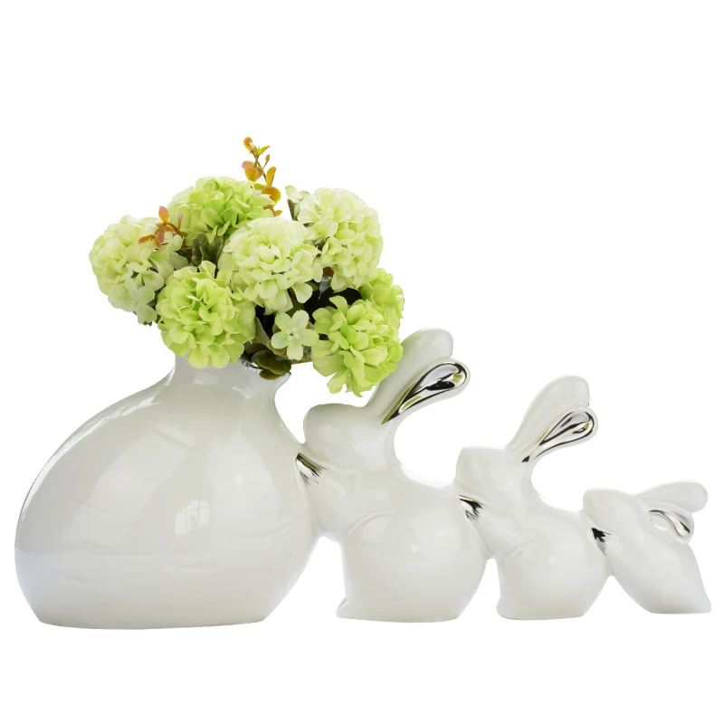 Best Seller Modern Ceramic Vase creative Vase rabbit family Figurines & Miniatures Wedding Gifts Home Handicraf