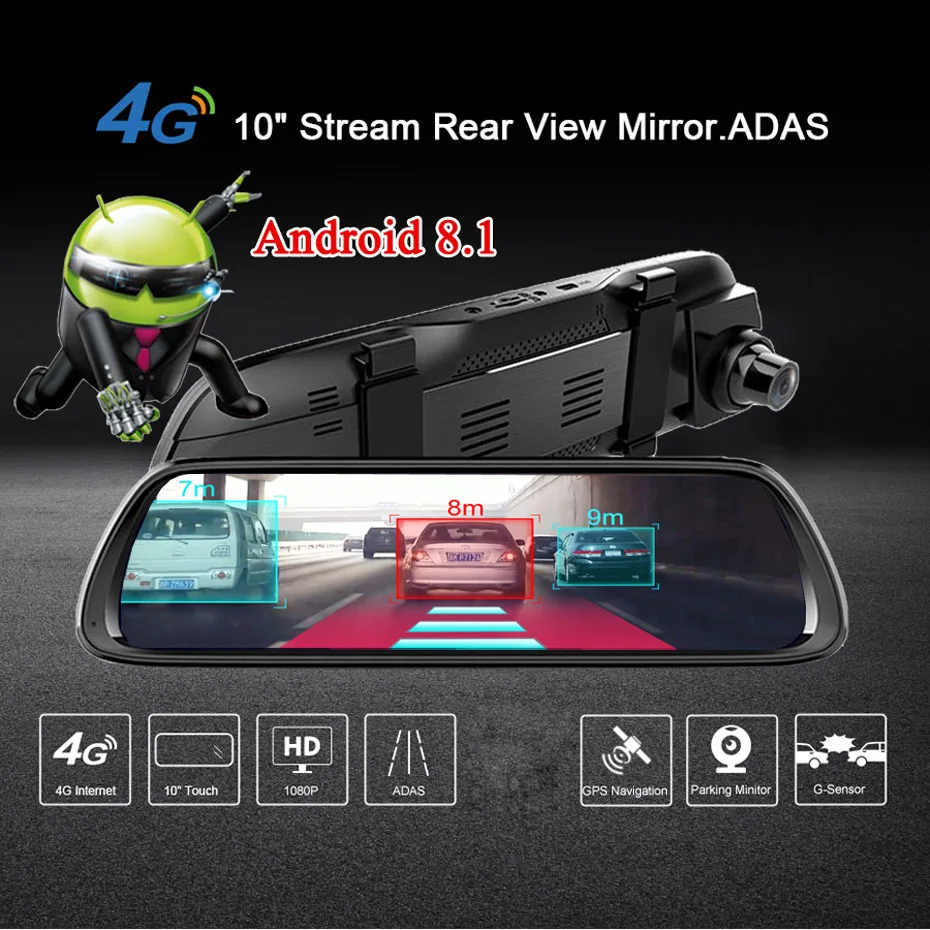 DashCam 10" 4G ADAS Android 8.1 WiFi Full HD 1080P Rearview mirror Camera Dual Lens Dash Cam GPS Na