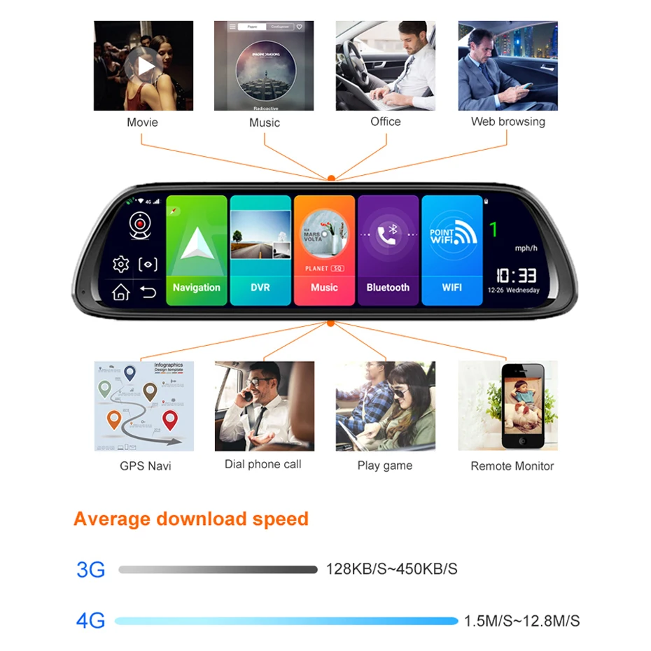 BEST QUALITY DashCam 10" 4G ADAS Android 8.1 WiFi Full HD 1080P Rearview mirror Camera Dual Lens Dash Cam GPS Na