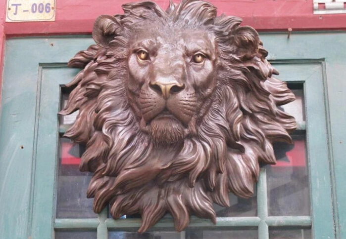 wholesale factory Chinese Pure Bronze HSBC Lions Head Wall Hang Family Decor Art Sculpture